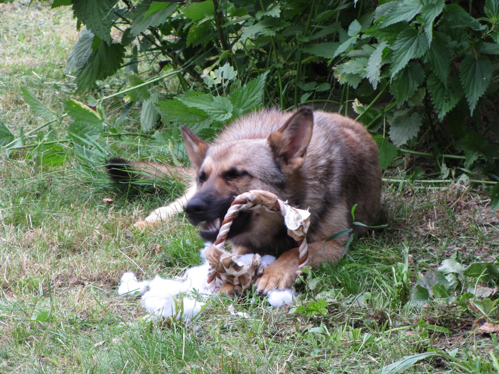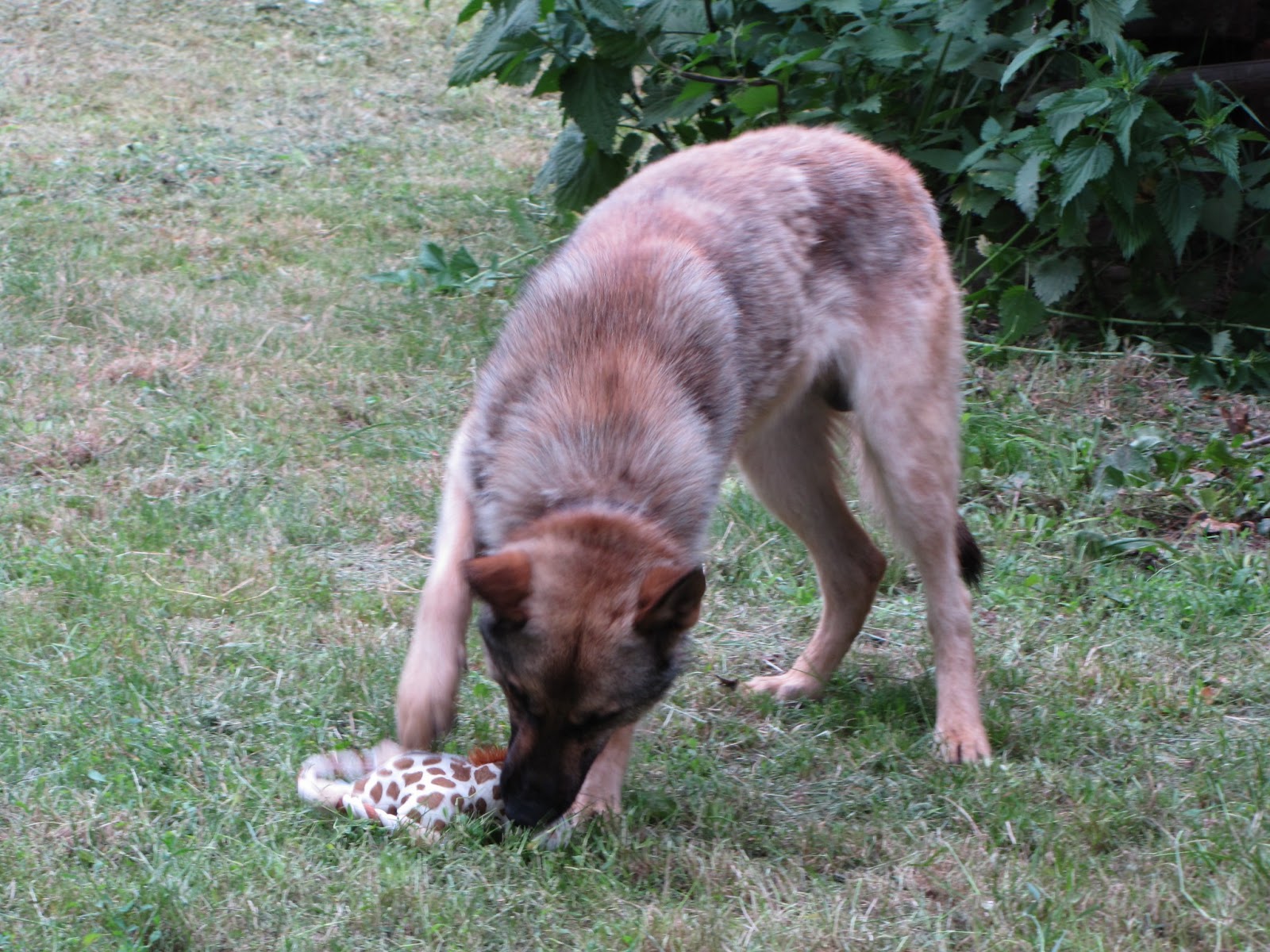 Csak tudnám, ki gondolta, hogy egy plüsstehén jó játék egy kutyának (ténylegesen kutyajáték volt, kaptuk, rá volt írva a cimkére!). Csádénak cirka 5 percig tartott, és ebben már a kibelezés is benne volt 🙂