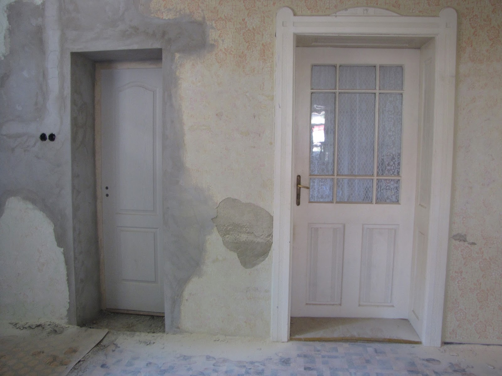 Az új ajtó már bent van, csak kép nem készült még. De nagy harc volt… Mivel nem gondoltuk át rendesen ajtóvásárláskor, hogy mit szeret a vályog és mit nem (mert nem mindenhol vályog ám a vályogházunk – inkább tégla! De ez egy másik történet.), keskeny tokosat vásároltunk, így egy délelőtt arra érkeztem meg, hogy az ajtó már bent van – KÖZÉPEN! Azaz nem a belső falsíkon, ahogyan én kértem, hanem a vastag fal közepén.