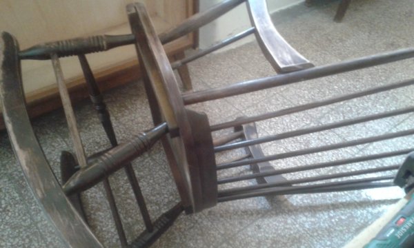 Mintha nem lenne sürgősebb dolgom… (pl. előszobaszekrény, mert a cipőink a pamlag és a fotel alatt tobzódnak a “konyhában” – nemrég tűnt fel, bárhol vagyunk, Picúrhölgy, ha leveszi a cipőjét, rögtön beteszi valami, többnyire szék alá… 🙂 ♥) …szóval nekikezdtem a tök ráérő és így is használható hintaszéknek, mert nehogymár barnán hagyjam!
