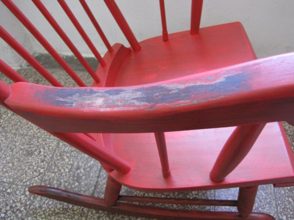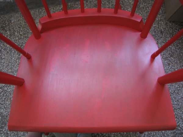 Festés után tisztán látszik, hogy jó lenne még egy kis mestertapasz a tökéletesen sima végeredményhez… de bele se merek gondolni, hány réteg piros fedné el a tapasz élénk fehér színét… 🙁 Mivel saját használatra készül a szék, és párnát is tehetek bele, annyira nem zaklat fel a dolog (dehogynem). De legalább a saját káromon tapasztalok (vagyis jut eszembe, hogy egy alapozó réteg kiad minden apró hibát, és utána tapaszolunk, te hülye! ). Ezt most így elfogadni kevésbé őrjítő…