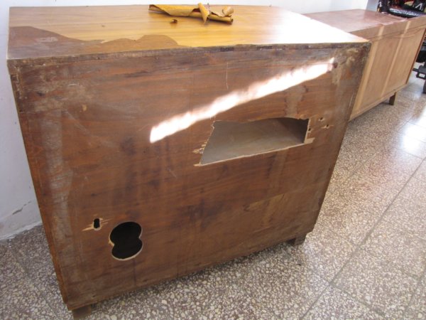 Állapot-dokumentáció belülről fotózva – így sem szebb: (Valószínűleg tv-szekrény volt “előző életében”.)