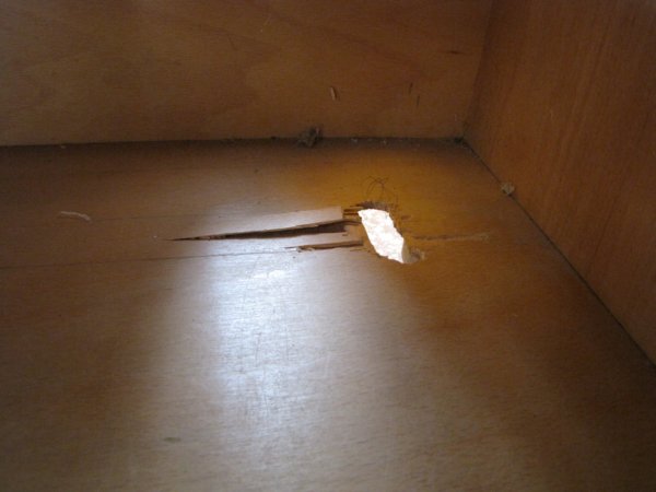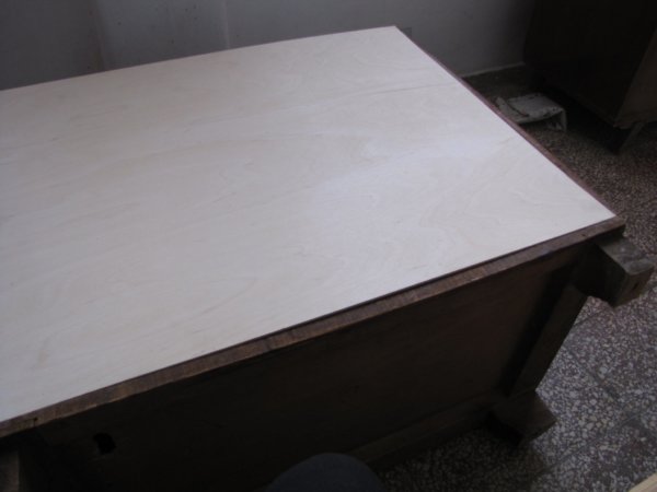 Ezen a fotón pedig nem csupán a nagy hiány látszik a komód tetején – apróbb foltokban máshol is hiányzik a “fedőréteg”.